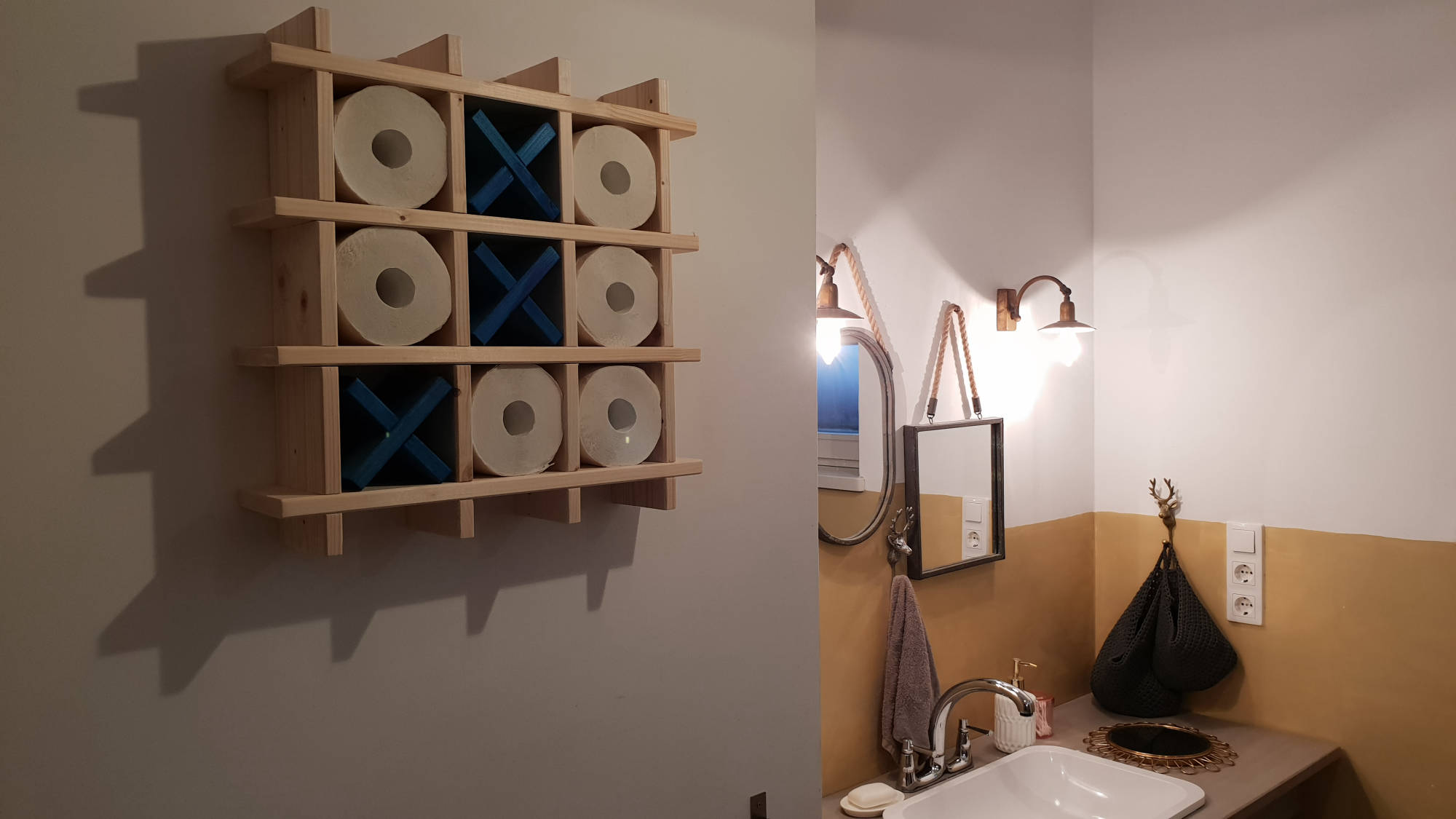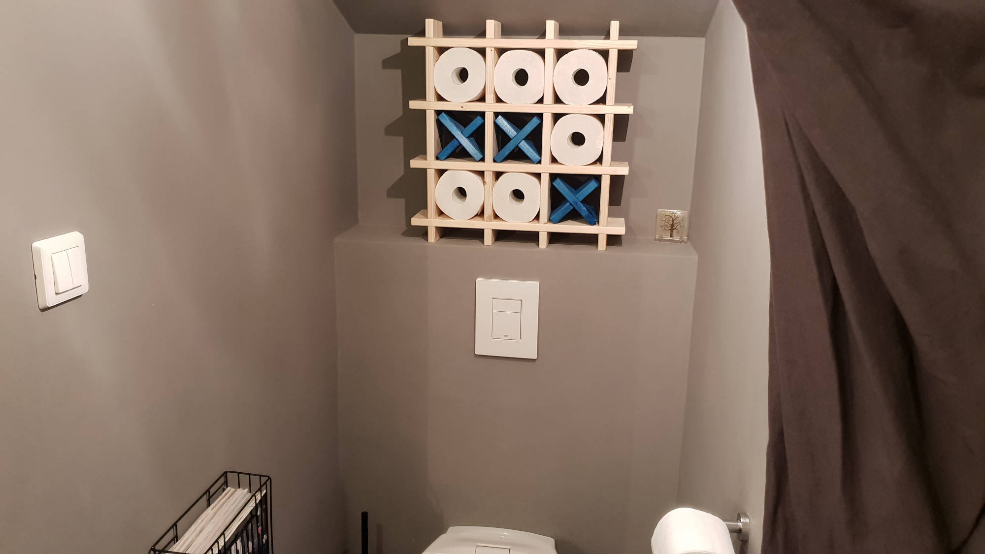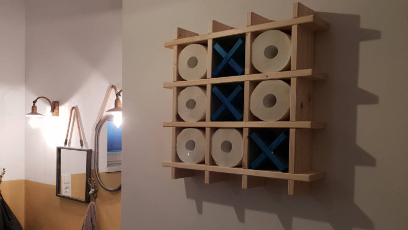 Fából készült wc papir tároló, tartó.